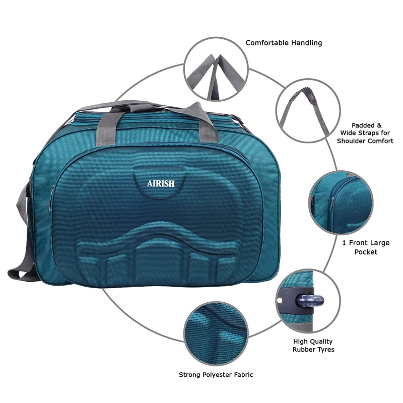 • 2 Wheels for easy carrying, 3 compartments (1 Main and 2 medium outer) , Width 21 inch, Height : 14.5 inch, Depth : 12 inch