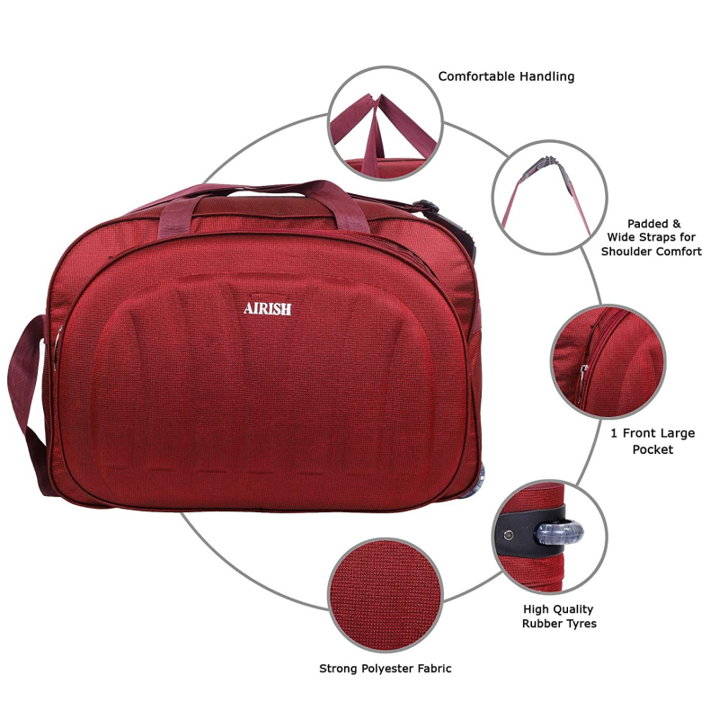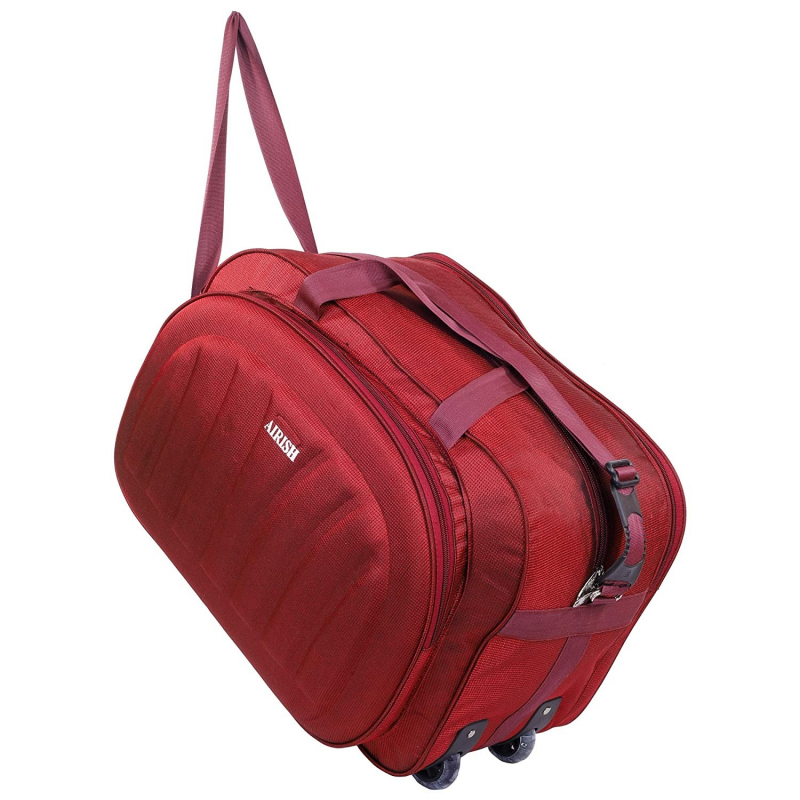 أريش فاشن بوليستر خفيف الوزن 50 لتر حقيبة سفر من القماش الخشن مع 2 عجلات (أحمر)