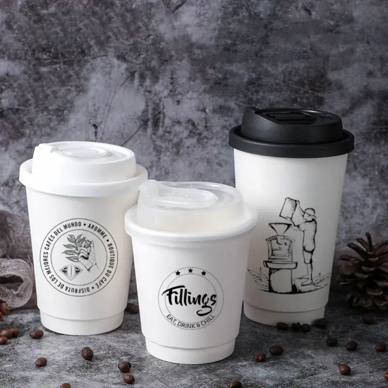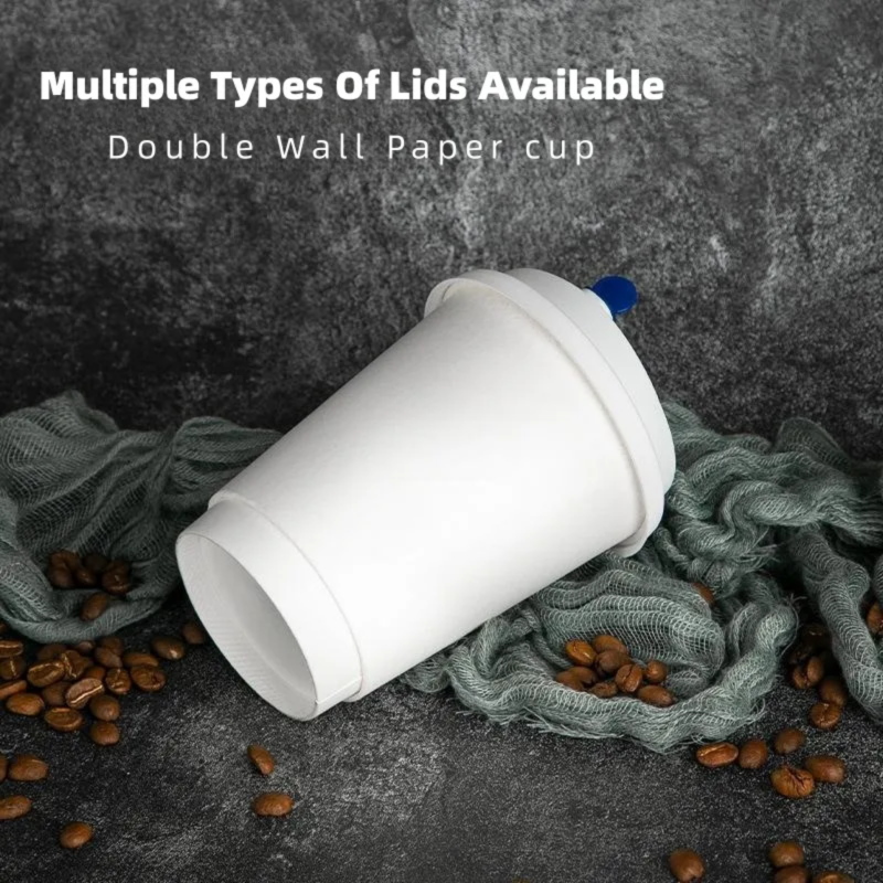 أكواب ورقية مزدوجة الجدار للقهوة الساخنة مع أغطية