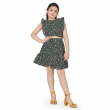 بلوزة جورجيت Pinafore Georgette الخضراء الداكنة للفتاة مع مجموعة ملابس تنورة غير متماثلة
