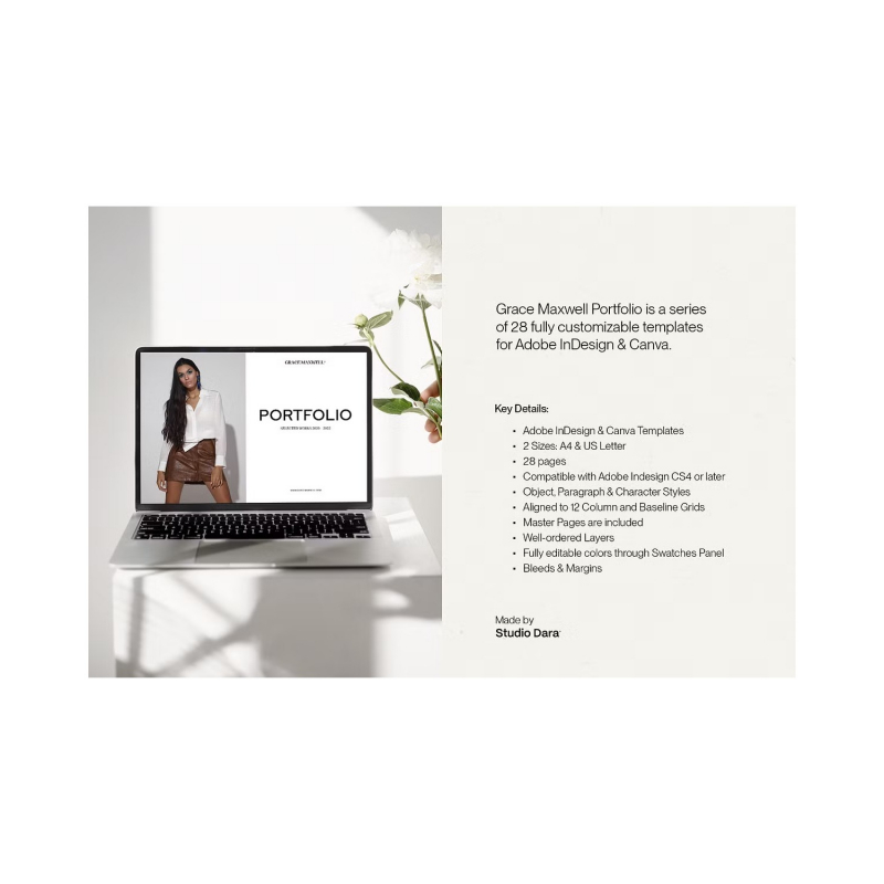 GRACE MAXWELL هو تخطيط محفظة قابل للتخصيص بالكامل تم إنشاؤه ل Adobe InDesign و Canva. يحتوي القالب على 28 صفحة ومصمم في كل من A4 (297 × 210 مم) والحرف الأمريكي (8.5 بوصة × 11 بوصة). إنه مثالي لجميع المصممين والمصورين والرسامين والمهندسين المعماريين والمصممون والفنانين والمخرجين الفنيين والوكالات من جميع الأحجام والمزيد.