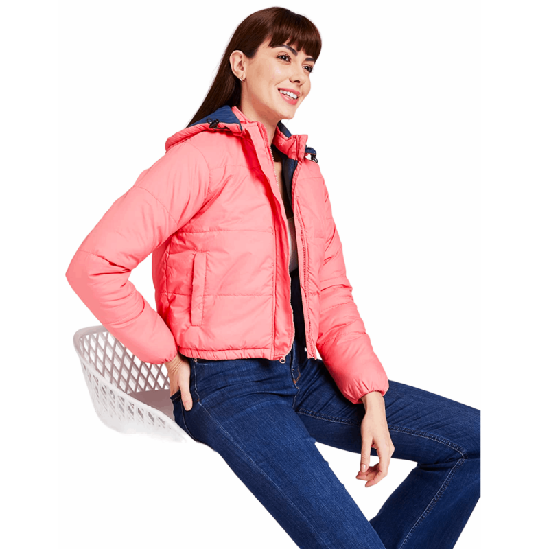 • Solid Crop length Full Sleeve Quilted Jacket