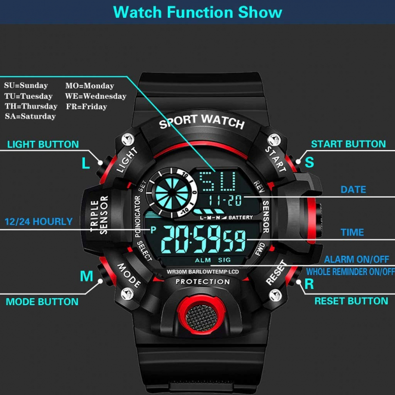 • Multi-Functions: Complete Calendar, Chronograph, Week Display, LED Display, Countdown ; Movement: Digital Movement ; Band Material Type: Silica gel