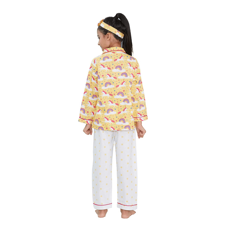 • The package includes 1 piece shirt with front button closure and 1 piece pyjama with the softest drawstring elastic making sure your child sleeps comfortably throughout the night without worrying about rashes or discomfort.