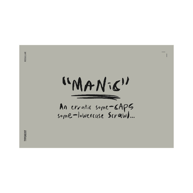 • What's included:: MANIC Regular (inc all alternative glyphs)