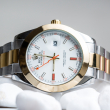 • The light reflections on the case sides and lugs highlight the elegant profile of the 31 mm Oyster case, which is fitted with a domed bezel. Aesthetically, the Datejust has spanned eras, while retaining the enduring codes that make it, notably in its traditional versions, one of the most recognized and recognizable of watches.