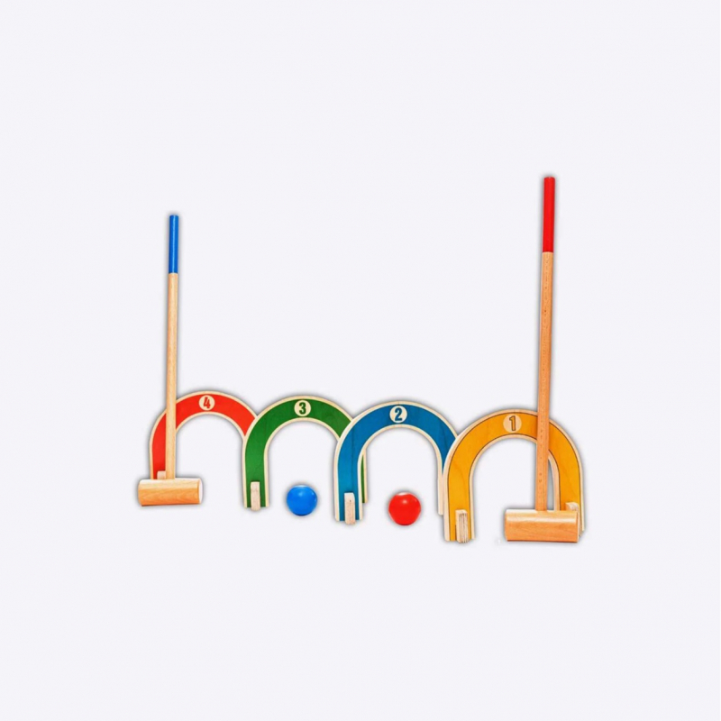• This 8-piece colourful croquet set made from non-toxic, safety-tested and kids-friendly material.